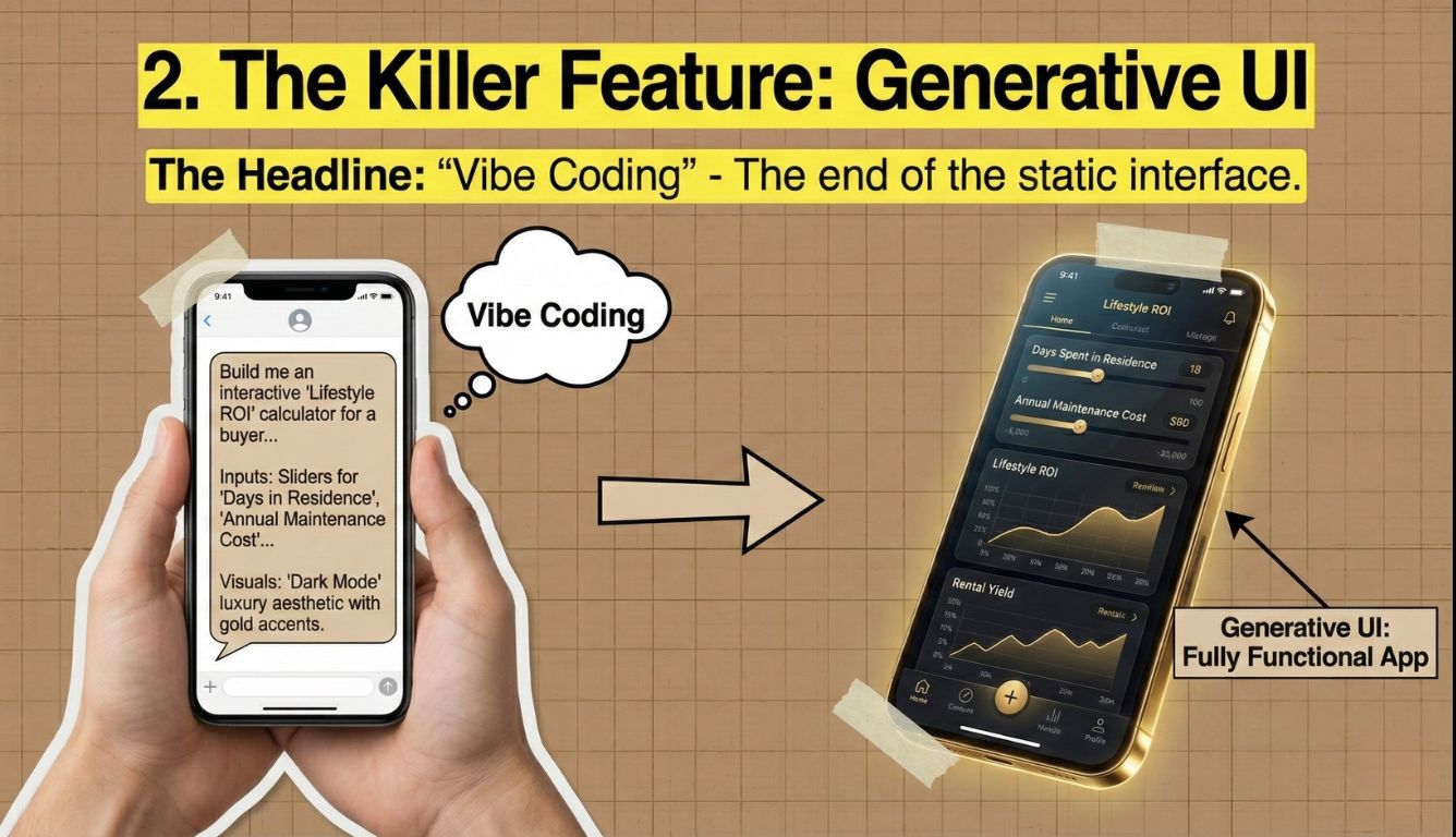 Through a feature called Generative UI, the model can write code in real-time to render a fully functional, interactive interface based on your specific query. You don't need a developer. You just need a vision.