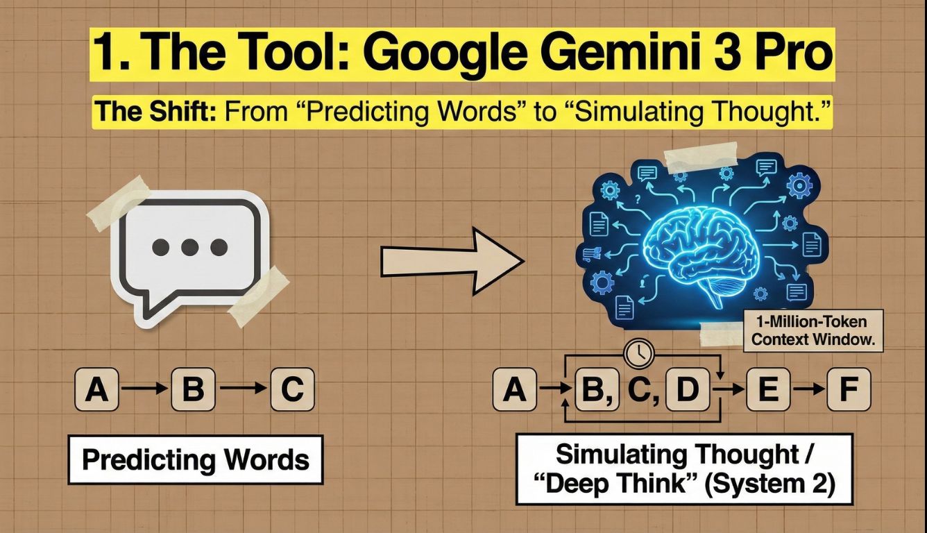 Until now, AI models were essentially sophisticated auto-complete engines. They guessed the next word. Gemini 3 Pro is different. It features a "Deep Think" (System 2) reasoning capability.